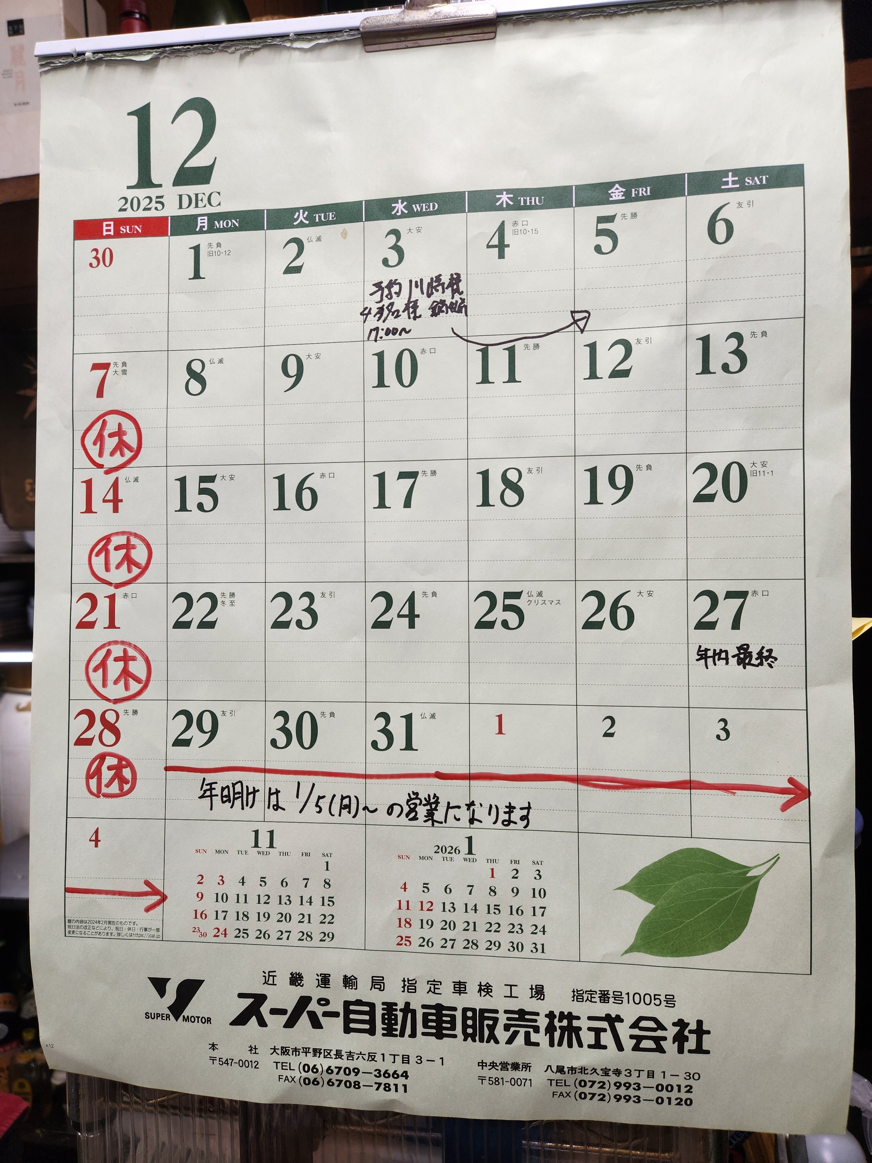 12月定休日のお知らせ 2025/12/01 いりべ酒店の11月の定休日をお知らせします。 毎週日曜日の12/7 12/14 12/21 12/28 を お休みとさせていただきます。なお、年明けは1/5(月)から通常通り営業いたします。今月も宜しくお願いします。